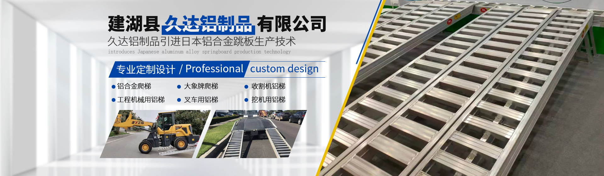 廣泛應用于聯合收割機、拖拉機、插秧機、挖掘機等機械建湖縣久達鋁制品有限公司引進日本鋁合金跳板生產技術,專業(yè)生產高強度鋁合金跳板,廣泛應用于聯合收割機、拖拉機、插秧機、挖掘機等機械。 我公司于2012年引進日本全鋁合金跳板生產技術。經過四年的學習、探索、生產、銷售,現已全面消化吸收鋁合金跳板技術、總結出一套成熟的生產、使用、售后服務經驗;為提高產品質量,加大設備投入,購買歐洲進口的鋁合金焊接設備和切割設備,保證產品的焊接強度和精度;結合中國收割機作業(yè)量大、作業(yè)條件復雜、中國收割機更重等特點,生產出更適合中國國情的高強度鋁合金跳板,承載力更強,抗疲勞效果更好,使用周期更長,同等使用條件下是市場上仿制產品使用壽命的1.5倍以上。大象牌鋁梯成為中國鋁梯行業(yè)馳名品牌。